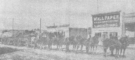 Before the railroad came, produce of Wallowa county was hauled out and merchandise was brought in by freight wagons. The nearest railroad point was Elgin. This picture was taken on west Main street and the background today would show the Gotter hotel, Datil Bakery, Enterprise Packing company, D. S. T. garage and the Taylor building. |