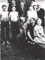 Identification by Donna Rees Sands. 2nd Row: Helen Conklin, boy, girl, girl, Zelda Puckett, Anderson girl, Raymond Richardson 3rd Row: Arlene Anderson, boy, girl, girl, Lewis Laird, Ron Puckett, girl, girl, Phyllis Morris, boy 4th Row: boy, boy, girl, Alice Bertsch, girl, Harry H., girl, Margaret Rundall, Lois Elmer, Mrs.-- 5th Row: Anita Towle, Audrey Carper, Carolyn Rees, Chuck Ronne, girl, boy, Irene Miller, boy 6th Row: girl, Marilyn Puckett, Donna Rees, boy, boy, Imogene Bates, Don Hagey, Jackie Gulden?, boy 7th Row: Cecil Bertsch, Adice Rundall, Beth Stephens, Ardith Gorham, Jackie Starer, Barbara Carper, boy, Wilmerth Bristow, Dick Conklin, Bronson, Clifford Towle 8th Row: Veldonna Wardell, Barrie Gassett, Boggs Puckett, Gay Conklin, Dinky Stoddard, Keith Hallmard, Mrs. Sanderson Owner: Donna Rees Sands |