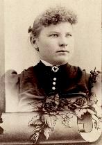 children. When we were in the mountains some days, our team gave out, we were left behind to rest the horses, then followed up, but never caught up until the next morning and as we crossed a little mountain stream, my father walked on ahead, or to see the light of campfires, but none were visable, so he returned saying we will have to stop here for the night as it's an aweful steep road ahead and hard to go down, can't be done tonight, so we camped. He tore up the pole stuck it not far from the campfire, as it began it get began to get aweful dark my mother had the three children go to the stream to wash. The camp was five miles ahead in this canyon back in a cove. My sister, Mary Naoma was 2 years younger than me - when I was nearly 3 years old I do remember a cyclone. I said come see the tree, it laid down. Then the folks took us 3 kiddies back to Clinton, IA. Mother said it was on a visit, all summer while our father went to the blackhills in South Dakota sending for us to come to him at Wamego, Kansas. We camped by a creek - it was raining hard. Everything was wet the next morning. Had breakfast by campfire. A girl named Louise Miller brought a big basket full of fresh baked bread. My mother did not get baked the evening before so they baked it, brought it hot to us. It was a long and a hard trip, many hardships. Father said we'd go back in 3 years to mother's old home in Iowa as we were going back that fall if the colony had not come along. Sun shown hot or else the wind blew hard. Sand and dirt in our eyes, that is the way it was for miles and miles - day after day. Mother drove and father walked away from the train but kept close enough to help when needed. We had 2 doctors, old Dr. Brown and Dr. Graham. We made 20 miles a day, but as the days dragged along, food got scarcer, we got down to 12 to 15 miles a day - then 10 miles. We stopped one day a week to lay over to rest the horses and ourselves and the women washed. Water was scarce at times. Had 20 gallon barrels fastened on outside of each wagon for drinking water. It sure was a grand sight to travel in the mountains and timber, cooler too. Still I seem to hear the wagon wheels bumping over the rocks and the echo in the canyons and see my father rough-lock the wheels with big log chains, going down the aweful mountain roads, so steep and far down, it was scary. The water barrels fastened to wagons would come loose once in awhile, and far down in the canyon it would roll, broken in a thousand pieces. I remember when we ferried across the Green River, we were nearly all day. We camped close by the night before. The ferry was small. We only went 2 or 3 miles after we crossed and camped for the night. When we came through Utah, I see the houses with flowers growing all around them. I cried to stay there, said "why can't we have one of them little houses, I'm tired, let's stay," mother said no it wasn't flowers I saw but gardens, something to eat, and it was the Mormon settlement. We couldn't stay there, but I kept watching through the round hole in the wagon cover at the back of the wagon until it faded from sight. Then I threw myself down and cried so hard because I wanted to stay. That was Salt Lake City. Never will I forget the scene there when we came through Idaho. I seem to see a lake, we camped there, stretched our tents, plenty of grass. Father picked out a tent as it was growing dark and took us one by one wrapped in a blanket and struck us in the tent. Somewhere near Cheyenne, Wyoming we stopped one night. Boys were going back to town. Manager said "no boys, you'll get in trouble," but they insisted. Manager made everyone hitch up and go 10 miles farther on - it was way in the night when we camped - laid over the next day. One night as we had just gone into camp, a cloud of dust ahead of us, came riders with prisoners, it was a vigilantes committee. Two men who had come out from the east somewhere sometime after the days of '49, had no luck in California. Lost all they had - and had worked for others. Could not get enough ahead to get a team and grub to return home so they started on foot with pack on their back. When the load got too heavy, they'd ditch a blanket, then some cooking utensil, then shoes wore off their feet - went barefoot. Finally they had ditched everything, even their coats, got foot sore, so they watched the cowboys horses when they hobbled them for the night. They came along, took one apiece - rode it not fast, but steady 'til somewhere in the mountains a bunch of cattlemen came and asked to have a tent for their prisoners. They told of their stealing their tired saddle horses and would hang them in the morning. Our men begged for these two young men after they got their story as they tried them without a court or a jury. They said they had come west to find riches in the gold fields of California. Had spent their all, and were broke and homesick. Were on their way back home and footsore and couldn't hardly walk, so when they came to saddle horses, they put a rope hackamore stile and rode them bareback until they came to some more horses. There, they would change, turn the others back the way they come and go on. I don't think they changed very many times until they were caught. The prisoners slept in our tent. We took the wagon and my father stood guard with others that night as it was his turn. We fed them the next morning and they turned and went our way west and as we came along, away up on the mountainside, two trees stood out. There hung these young men. They rode away and left them for the birds to eat. It seemed too far up for us to go and we only had grub to carry us to the next station. No one knew what the pioneers went through those days. Our team gave out one afternoon and my father drove on one side - said go on boys, I'll follow when the horses rest, I'll be all right. I seem to see with heart-aching their passing by, getting farther and farther ahead. I asked papa - that is what we ca