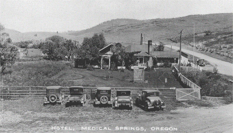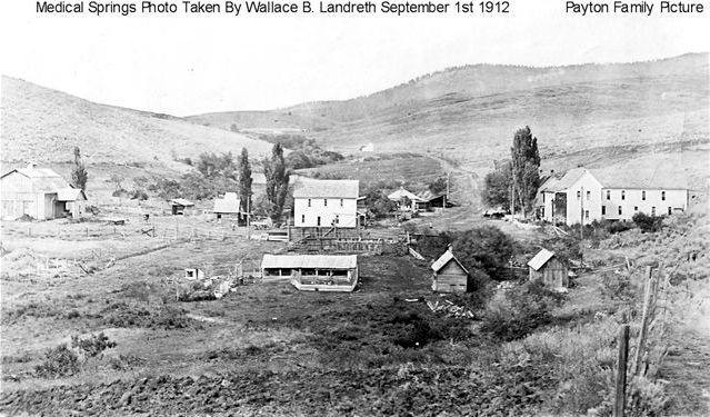 Medical Springs: From Indian medicine waters to a world renowned health resort, complete with full medical staff, this hot springs has served thousands of people. To travel to Medical Springs, located 22 miles north of Baker city on Highway 203, exit from I-84 four miles west of Baker City. Medical Springs is very close to the Baker County Line and was once in Baker County. Old Wright Cemetery, Medical Springs