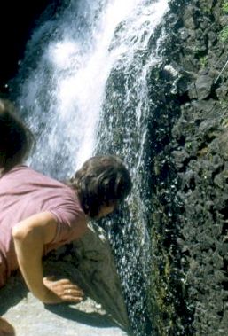 Roger Gramm from Hanover, Germany taking a closer look at one of the falls that flows from Ice Lake, Eagle Cap Wilderness in Wallowa County |